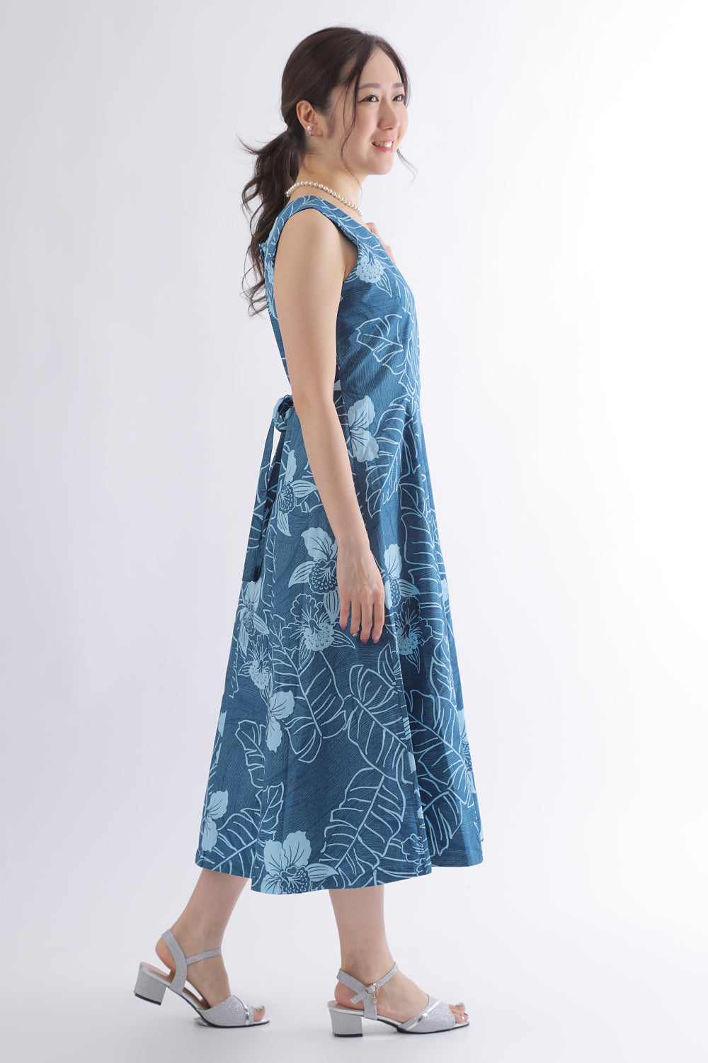 コットン100%なのでとても着心地が良く、ウエストラインは腰位置の紐で調整できます。お揃いのアロハシャツもございます。