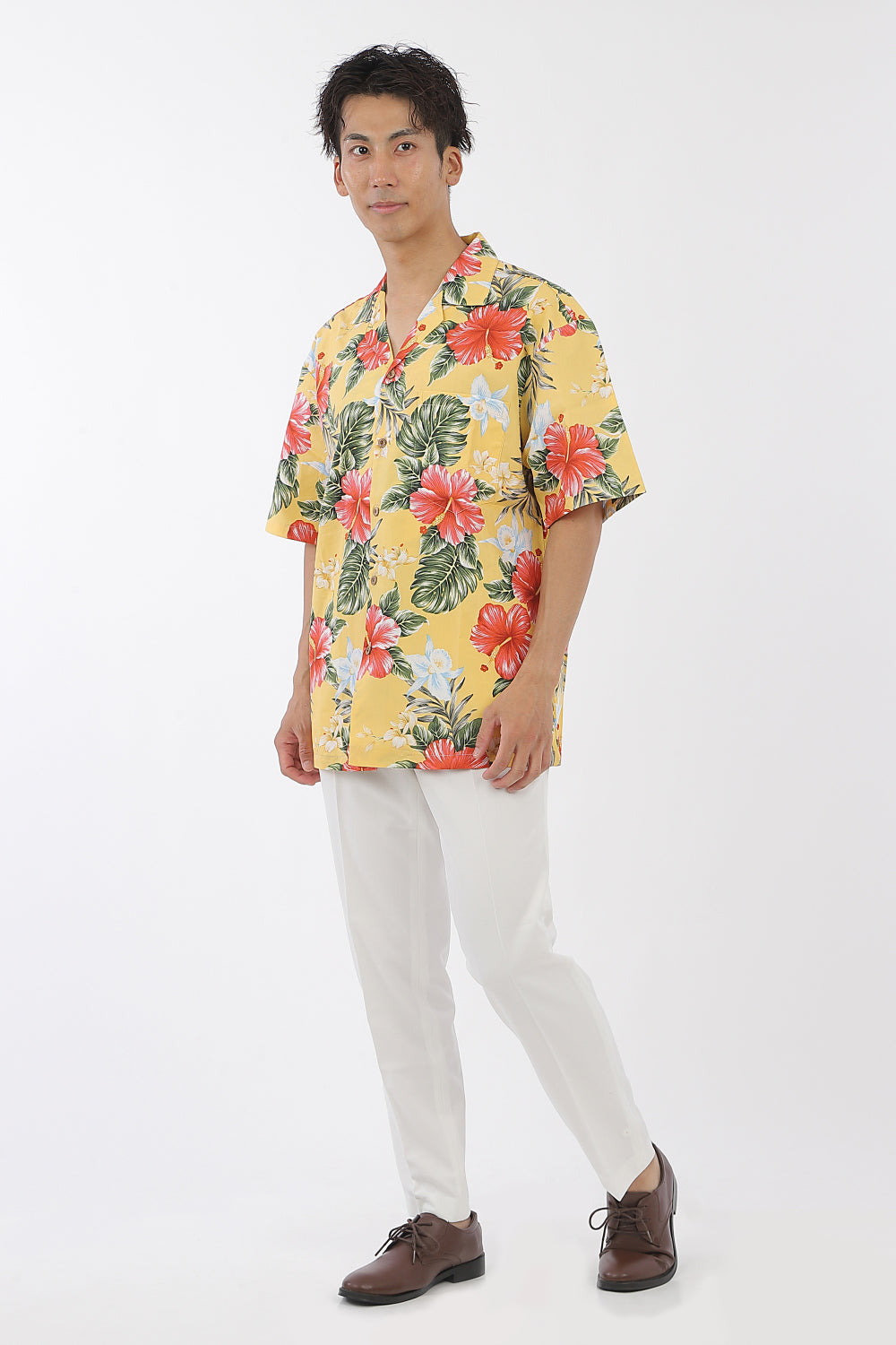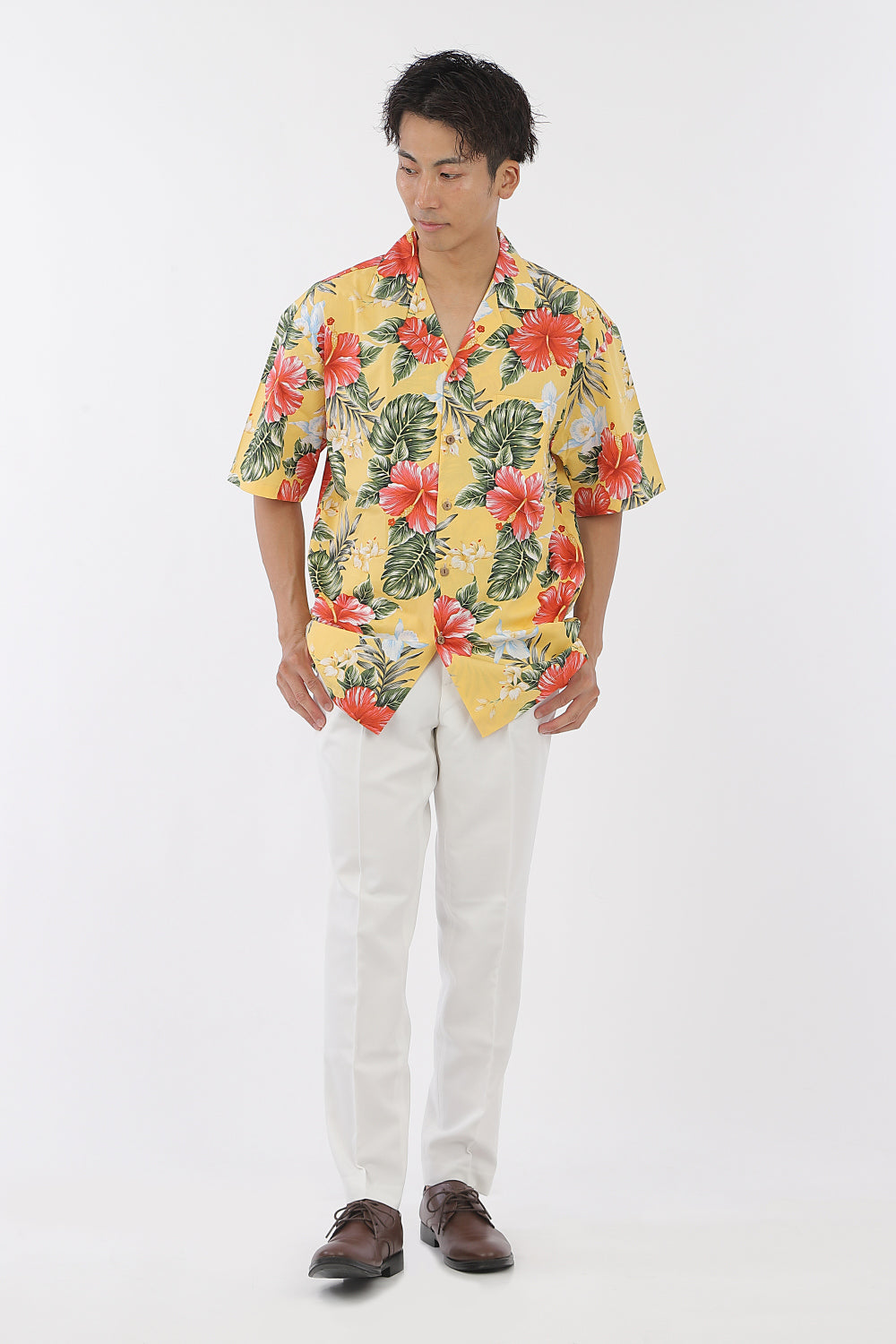 This classic floral pattern aloha shirt is imported directly from a long-established Hawaiian brand.
