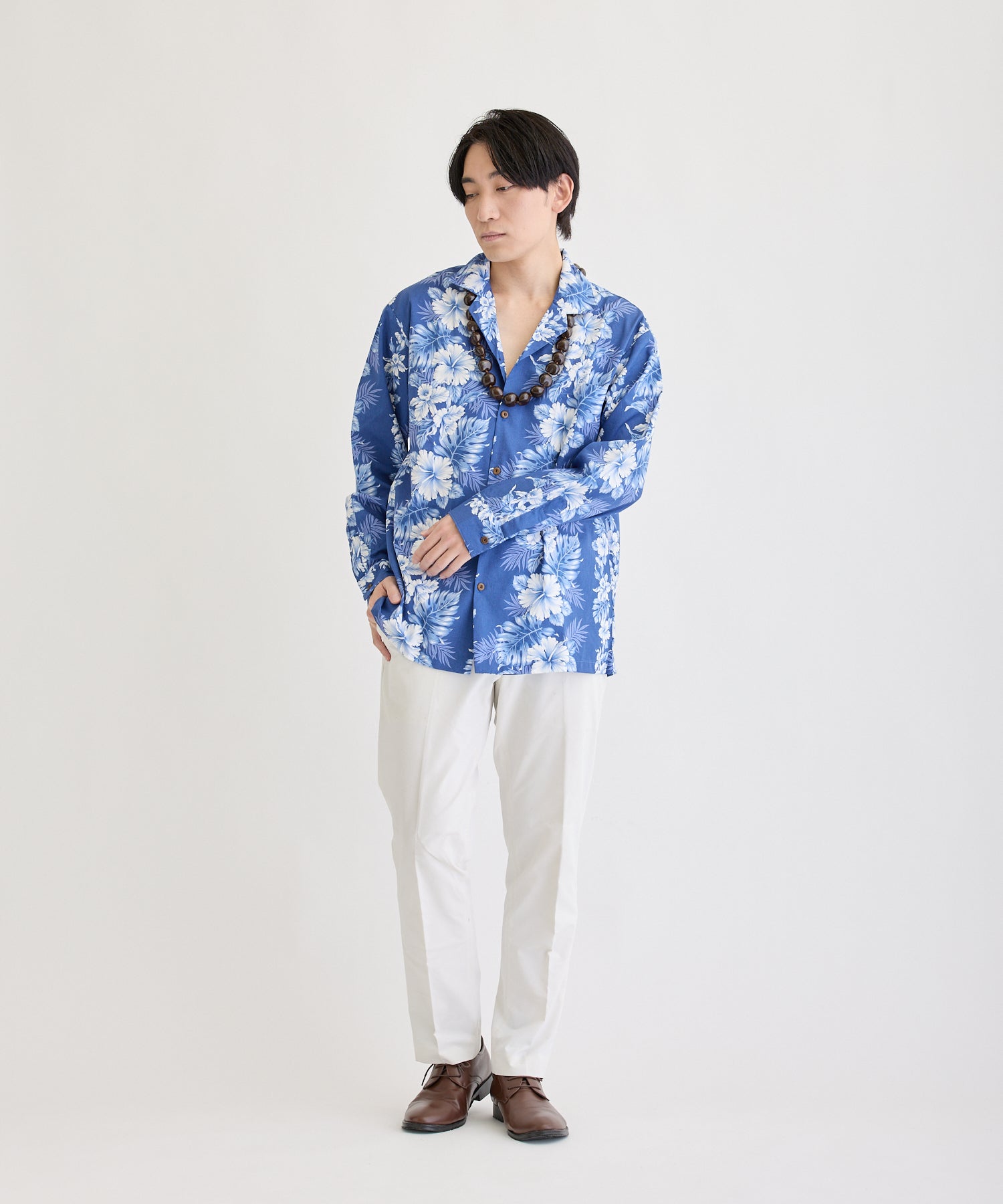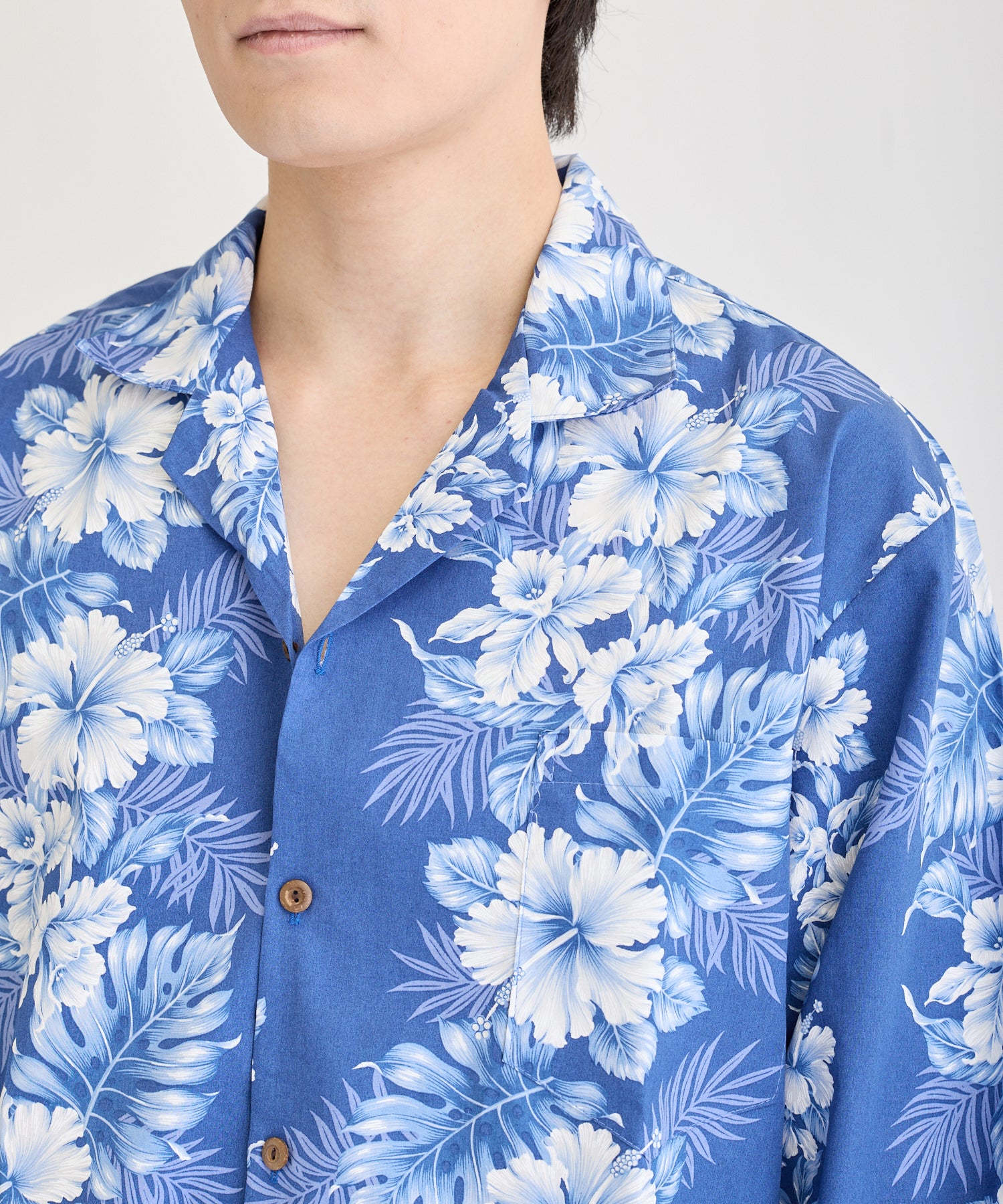 This classic floral pattern aloha shirt is imported directly from a long-established Hawaiian brand.