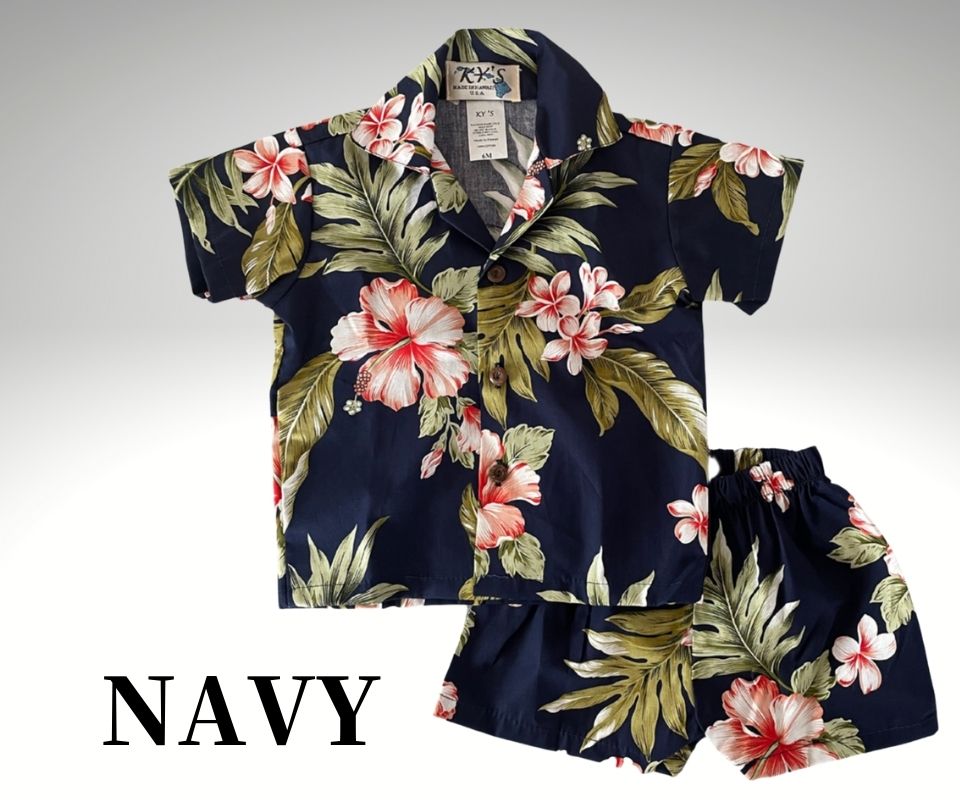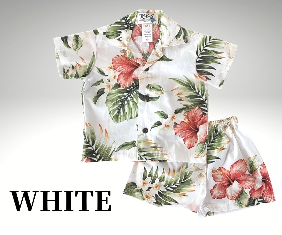 アロハシャツだけではなくお揃いのハーフパンツとのセット商品です。